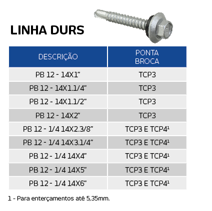 Fixador Autoperfurante com design exclusivo em aço carbono, com revestimento Ecoseal que alia proteção galvânica a proteção quimica, aumeta a longevidade e atua como isolante, impedindo a formação de corrosão galvânica “Tem como acessório uma arruela tubular de EPDM com alta pureza e resistência aos raios U.V, alojada na cavidade DUH da cabeça 5/16”. Possui ponta broca Super Bit, que garante alto desempenho na perfuração. Contempla as variações DURS Insulation para fixação de telhas termoacústicas (Sanduiche) e COLOR HEAS SYSTEM , sistema de pintura na cabeça do fixador na cor da telha.